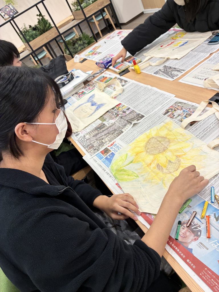 布用のクレオンを使い、それぞれの個性が光るエコバッグが沢山誕生しました✨
