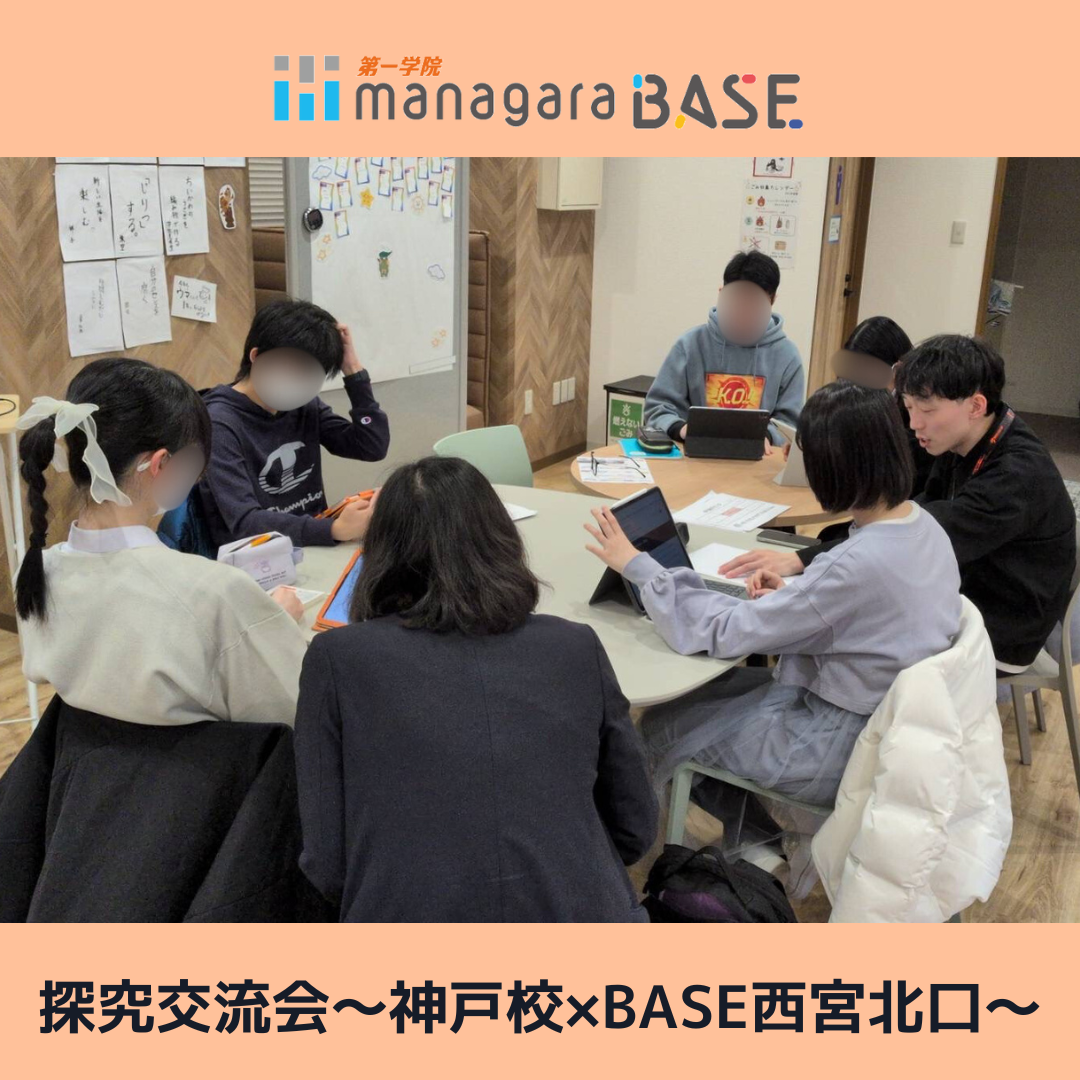“夢を育む教育のまち”西宮に誕生した、managaraBASE西宮北口へようこそ!ここは、高校・大学卒業を目指すだけでなく、家庭や地域とつながりながら夢中になれるものを見つけてジブンらしく学べる新しい学びの場です。予測が難しいこれからの時代に必要なのは、ジブンらしさを軸にし、どこでも活かせるスキル(思考力/タイムマネジメント/ファイナンス/ライティング)を身につけることだと考えます。あなたの「やってみたい」を私たちが全力で支えます!ぜひ一度BASE西宮北口にお越しください!