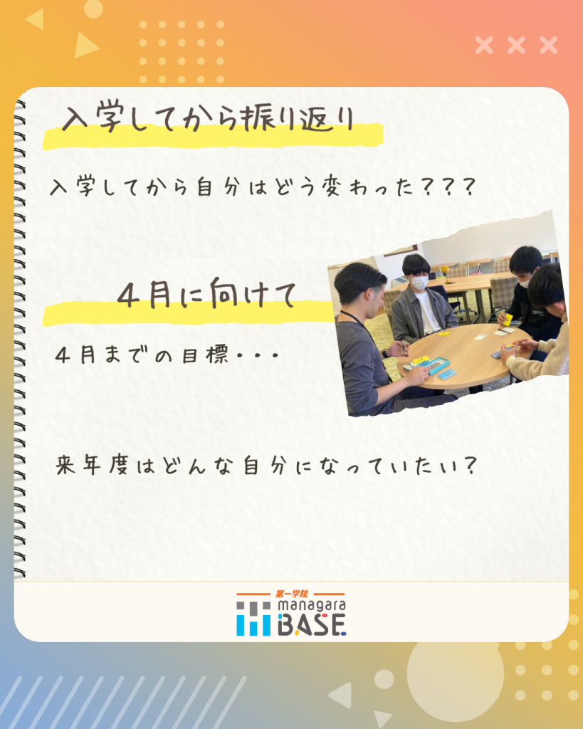 その振り返りをして、4月からどんな目標をたてるかを考えてくれました!