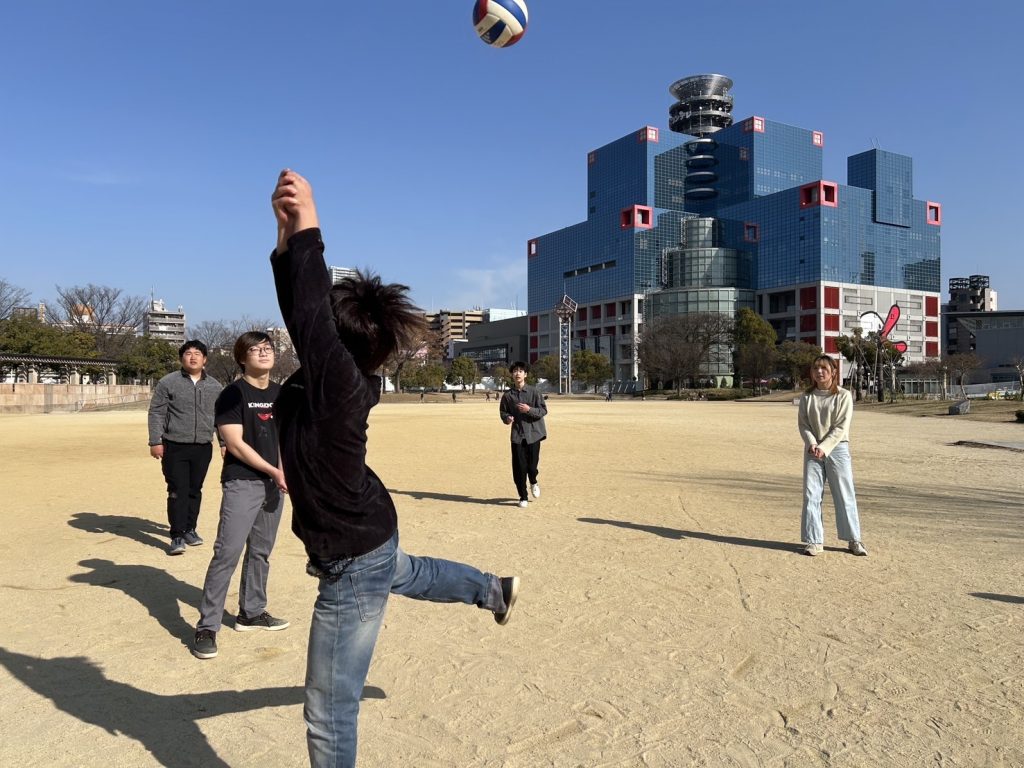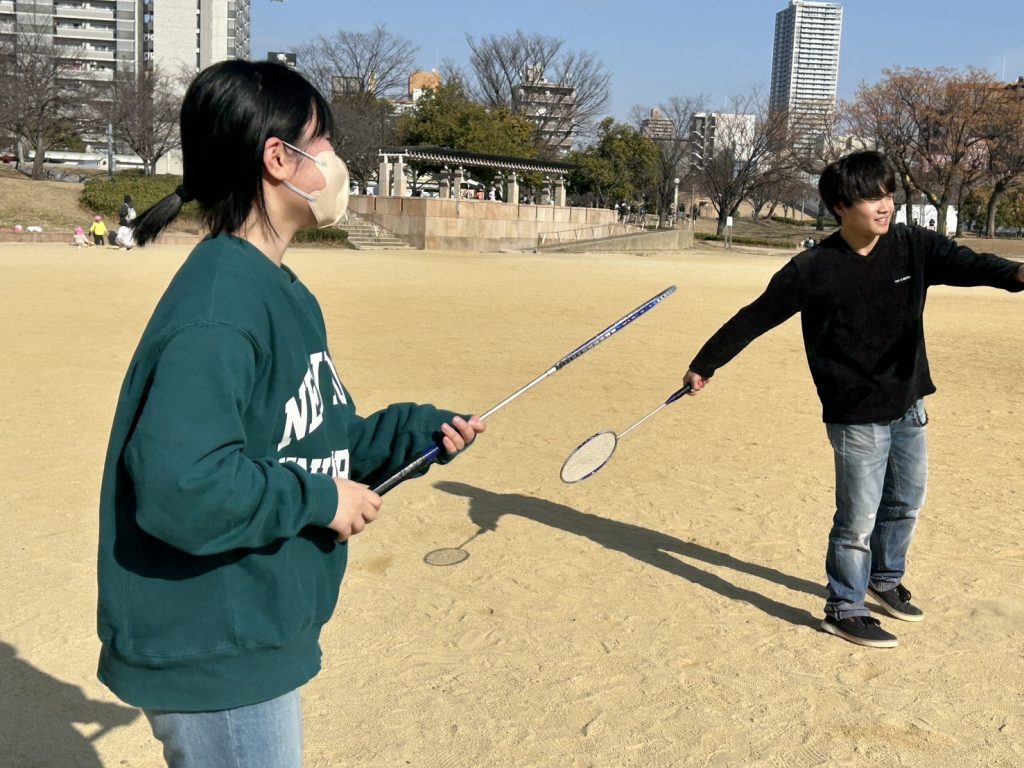 今回は、寒さに負けず!扇町公園でバドミントンやバレーボールをしました!